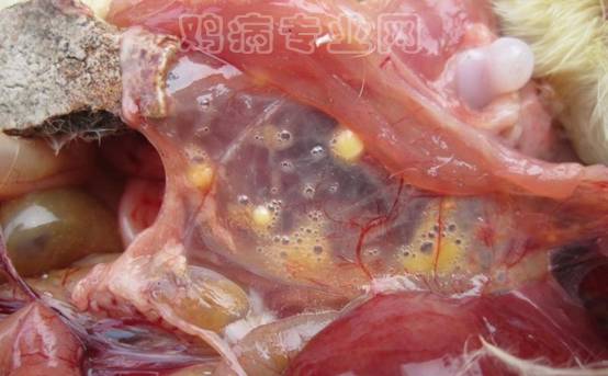 氣囊上有黃色米粒樣結(jié)節(jié)
